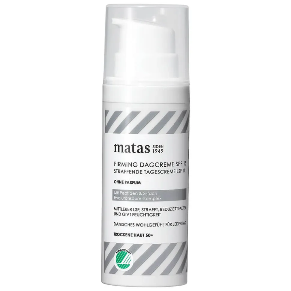Die Matas Beauty Straffende Tagescreme LSF 15 bietet Ihnen eine durchdachte Pflegeformel, die speziell für die Bedürfnisse trockener und sensibler Haut ab 50 entwickelt wurde. Diese parfümfreie Creme kombiniert einen effektiven 3-fach Hyaluronsäure-Komplex, der Ihre Haut intensiv mit Feuchtigkeit versorgt und feine Linien reduziert. Die Elastizität Ihrer Haut wird deutlich verbessert, während der Peptid-Komplex Matrixyl die Kollagenproduktion anregt und eine straffende Wirkung entfaltet. Mit einem mittleren Lichtschutzfaktor von 15 schützt diese Creme Ihre Haut vor schädlichen UV-Strahlen, was sie zu einer umfassenden Lösung für den täglichen Schutz und die Pflege reifer Haut macht.