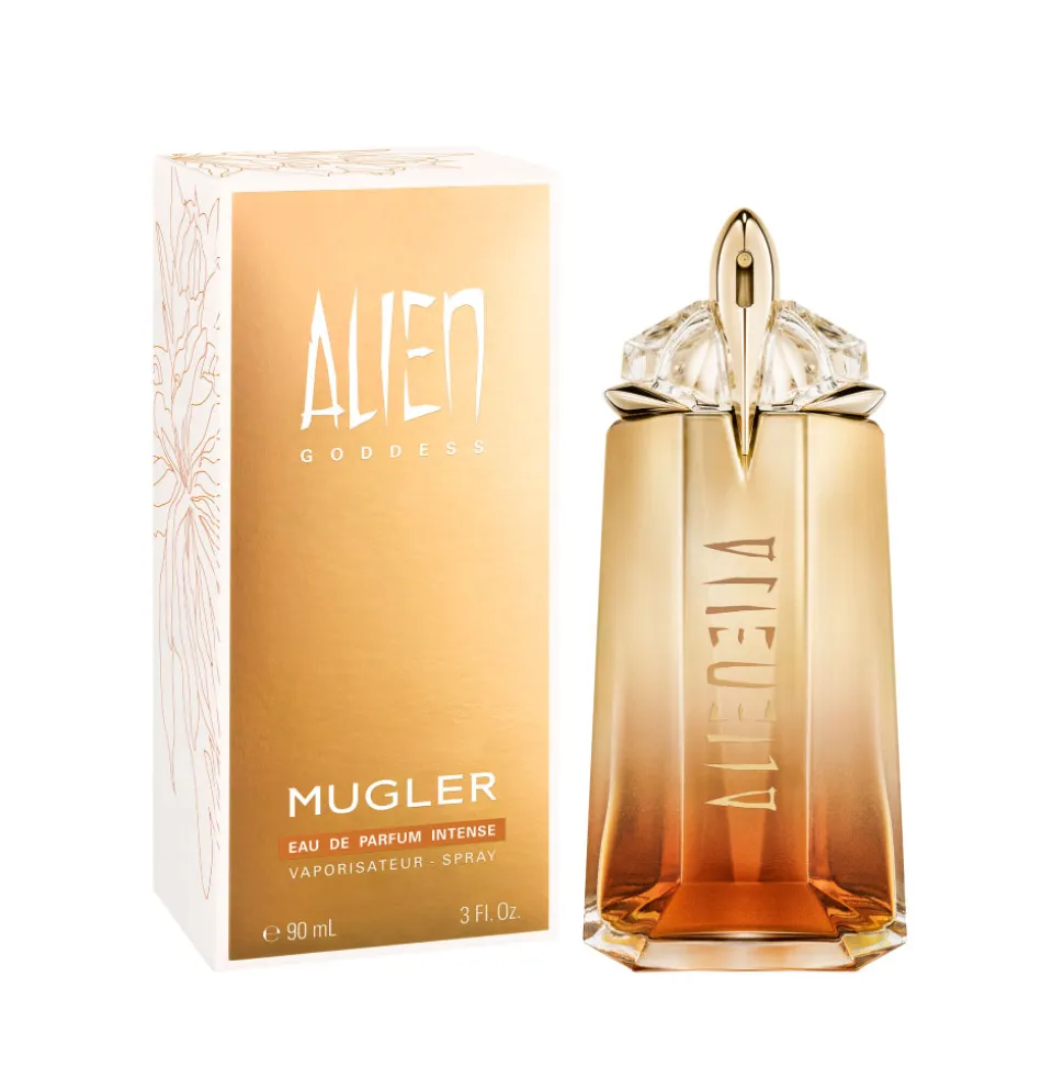 Der Flakon des MUGLER Goddess Intense Eau de Parfum Nat. Spray ist ein wahres Kunstwerk. Seine elegante, schlanke Form wird durch einen goldenen Farbverlauf akzentuiert, der an einen Sonnenuntergang erinnert. Die klare Linienführung und die sorgfältig gestalteten Details verleihen ihm eine edle Optik. Der Flakon wird von einem markanten, kristallähnlichen Verschluss gekrönt, der das mystische Wesen des Duftes widerspiegelt. Diese ästhetische Gestaltung macht das Parfum nicht nur zu einem olfaktorischen Erlebnis, sondern auch zu einem visuellen Highlight in jeder Sammlung.