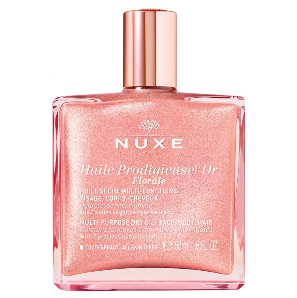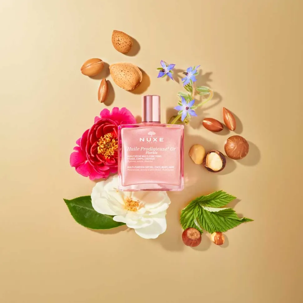 NUXE Huile Prodigieuse® Or Florale ist eine wahre Hommage an die Schönheit und Pflege. Diese exquisite Komposition aus sieben wertvollen, pflanzlichen Ölen umhüllt Ihre Haut mit einer leichten, nicht fettenden Textur und spendet intensive Feuchtigkeit. Die mineralischen Schimmerpartikel natürlichen Ursprungs verleihen Ihrem Teint einen faszinierenden roségoldenen Glanz, der alle Hauttypen in ein strahlendes Licht taucht. Dieses Trockenöl umschmeichelt Ihre Sinne mit seinem floralen, frischen Duft, der eine belebende Energie ausstrahlt. Eine nachgewiesene Wirksamkeit und höchste Zufriedenheit bei Anwenderinnen belegen die herausragenden Eigenschaften dieses Produkts. NUXE Huile Prodigieuse® Or Florale wird in Frankreich entwickelt und hergestellt und spiegelt höchste Ansprüche an Qualität und Hautverträglichkeit wider.