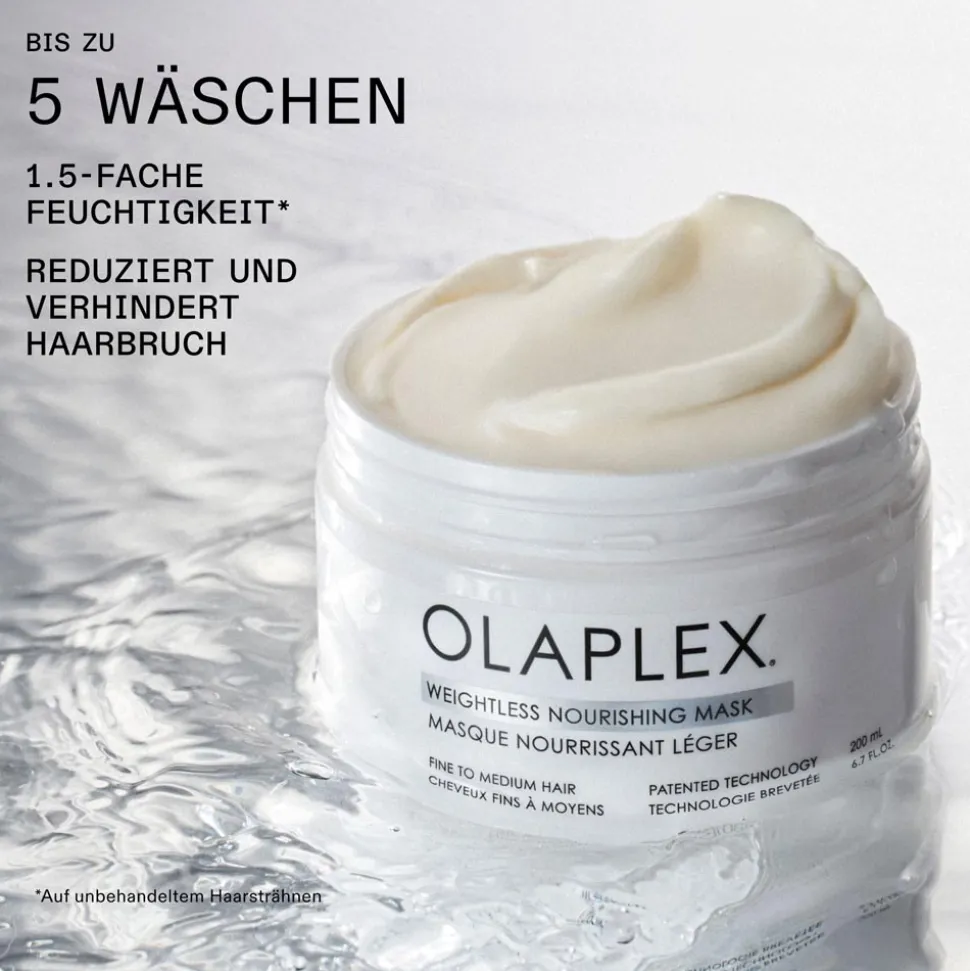 Diese sofort volumengebende Haarmaske für feines bis mittleres Haar ist mit der OLAPLEX Biomimetic Cuticle Technology™ formuliert, die schwerelose Feuchtigkeit einschließt und die Haarkutikula für fünf Haarwäschen versiegelt. Sie verleiht dem Haar sofort mehr Glanz, reduziert und beugt Haarbruch vor – bei jeder Wäsche, um den Längenerhalt im Laufe der Zeit zu unterstützen.