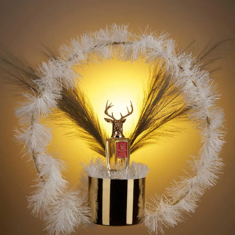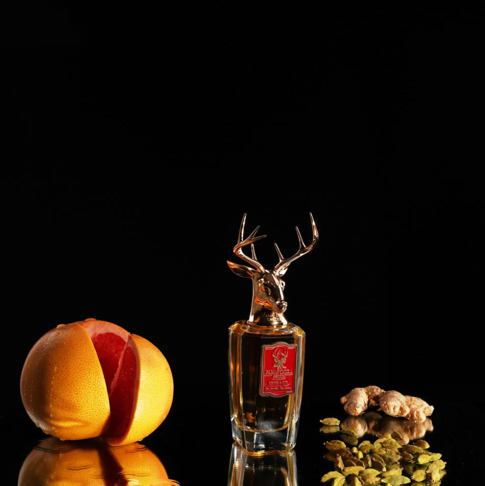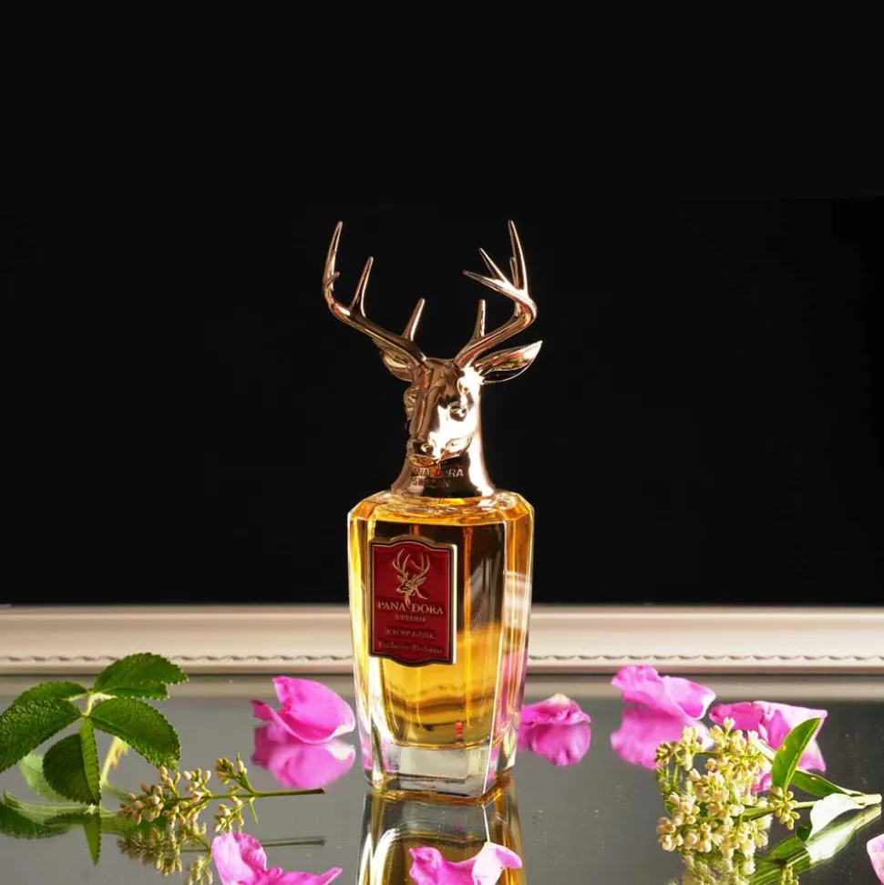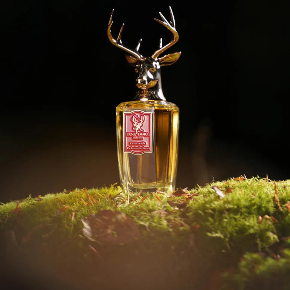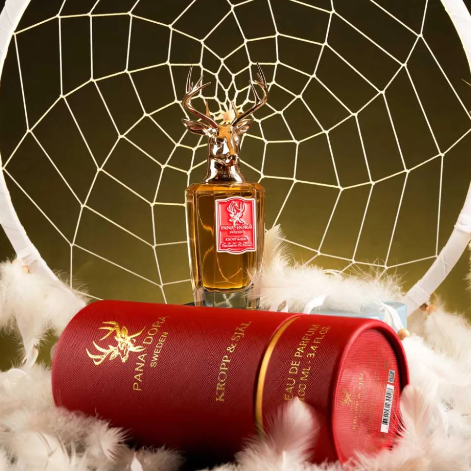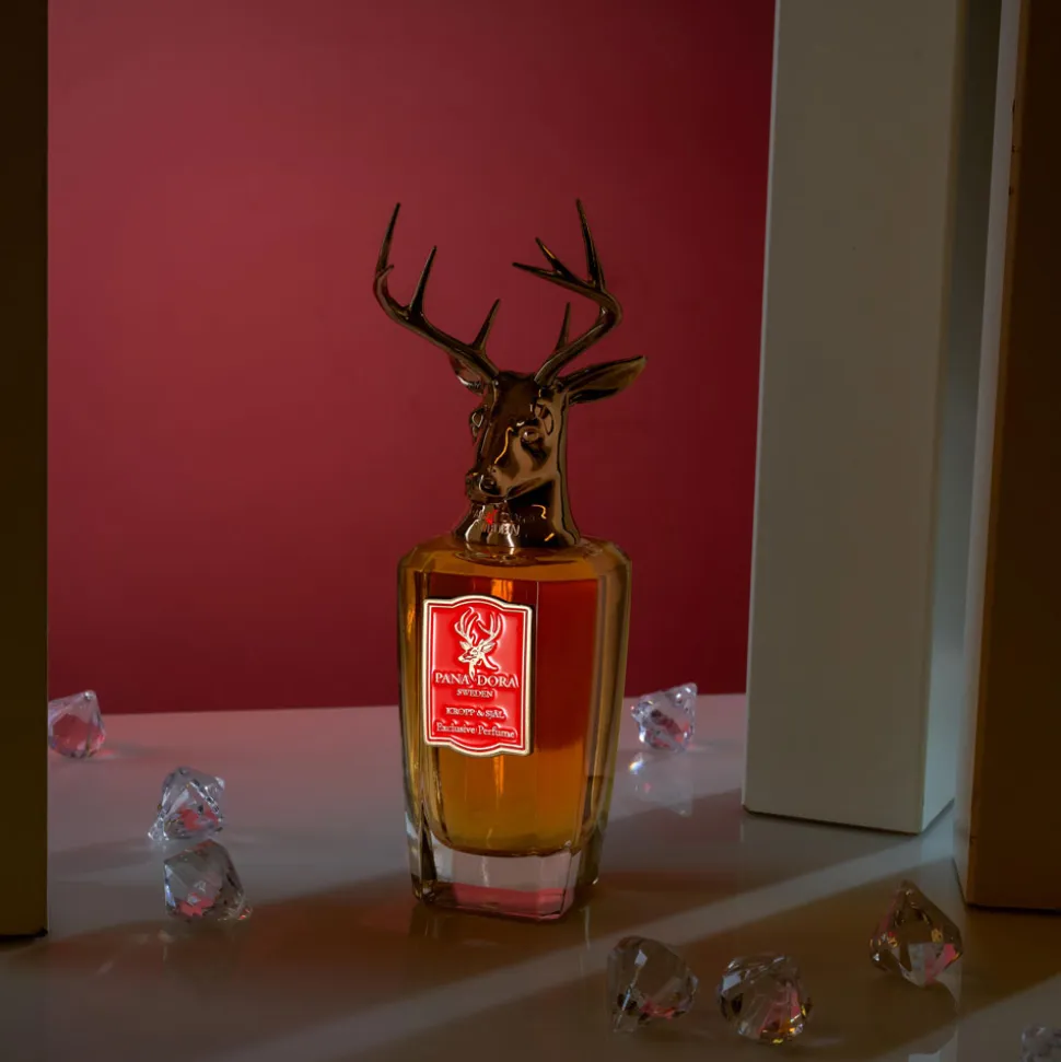Der Flakon des Pana Dora Sweden Eau de Parfum Sprays ist ein wahres Kunstwerk. Die elegante, klare Formgebung lässt den goldenen Duft im Inneren erstrahlen, während der Verschluss durch ein kunstvoll gestaltetes Hirschgeweih seine majestätische Ausstrahlung erhält. Die feinen Details des bronzefarbenen Geweihs zeugen von handwerklicher Präzision und verleihen dem Flakon einen unvergleichlichen Charakter. Das rote Etikett auf der Vorderseite setzt einen markanten Akzent und unterstreicht die edle Erscheinung. Dieser Flakon ist mehr als ein Behältnis er ist ein ästhetisches Statement, das in jedem Raum zum Blickfang wird.