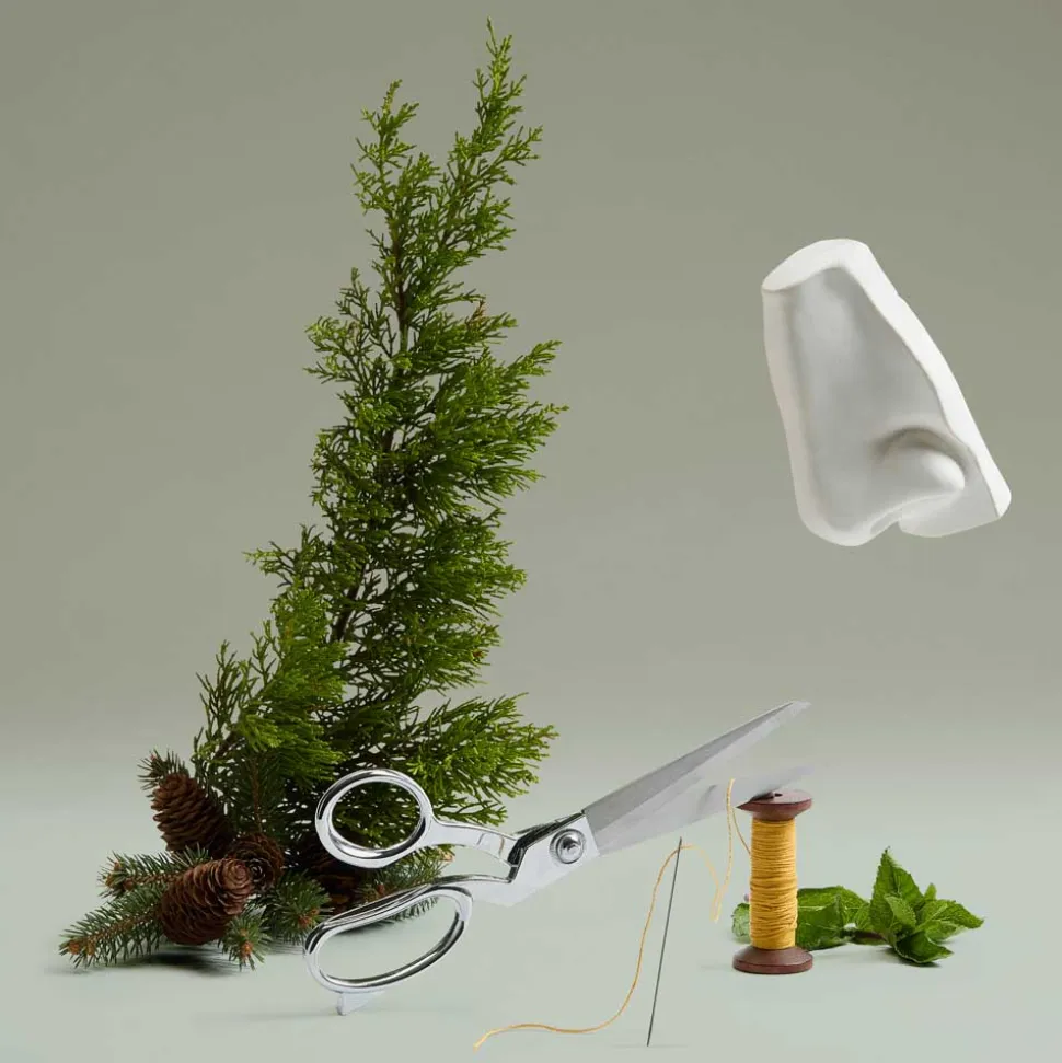 Zunächst wird ein Hauch von Minze auf Tannenbalsam aufgefädelt, der fachmännisch mit Zypresse und Zeder vernäht wird.