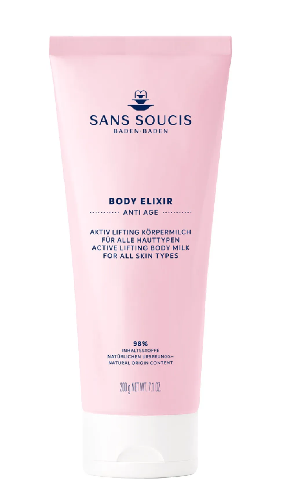 Die Sans Soucis Aktiv Lifting Körpermilch präsentiert sich in einem eleganten, zartrosa Flakon, der nicht nur praktisch, sondern auch ein optischer Genuss ist. Die schlanke Form liegt angenehm in der Hand und fügt sich harmonisch in jedes Badezimmerambiente ein. Die subtile Farbgebung und das stilvolle Design verleihen dem Produkt einen Hauch von Exklusivität, der die hochwertigen Inhaltsstoffe widerspiegelt. Ein feiner Verschluss rundet das Erscheinungsbild ab und garantiert eine einfache und präzise Anwendung. Dieses Produkt ist eine perfekte Ergänzung für Ihre tägliche Pflegeroutine.