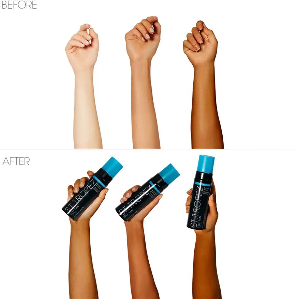 Das St. Tropez Dark Bronzing Mousse vereint fortschrittliche Bräunungstechnologie mit einer natürlichen Ausstrahlungskraft, die individuell auf Ihre Haut zugeschnitten ist. Die intelligente Bräunungsformel ermöglicht eine perfekt abgestimmte Bräune, die Ihre natürliche Melaninstruktur berücksichtigt und verstärkt. Durch spezielle Bräunungsverstärker und ein duales Aktiv-Bräunungssystem dringen die 100% natürlichen DHA- und Melanin-Booster tief in die Haut ein und entfalten ihre Wirkung. Die enthaltenen Jojoba Ester und Vitamin E versorgen Ihre Haut mit intensiver Feuchtigkeit und schützen sie gleichzeitig vor schädlichen Antioxidantien. Das Resultat ist eine langanhaltende, gleichmäßig verblassende Bräune, die Sie strahlend und gesund aussehen lässt.