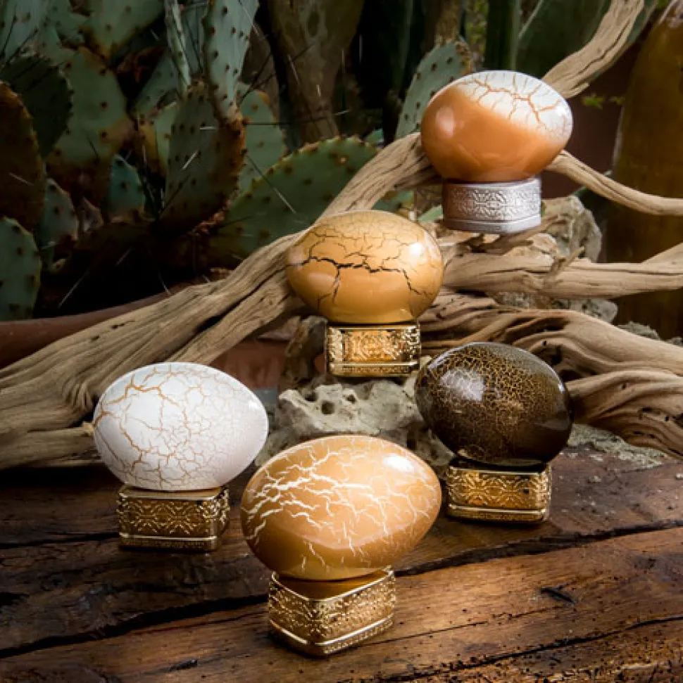 Das Design des Flakons von The House of Oud Eau de Parfum Spray ist ebenso faszinierend wie der Duft selbst. Die einzigartige, ovale Form erinnert an einen kunstvollen Stein, von der Natur geformt und von der Zeit geprägt. Der goldene Farbton des Flakons spiegelt die Wärme und den Reichtum der orientalischen Noten wider, während feine, dunkle Linien, die über die Oberfläche verlaufen, an die Risse der Wüste erinnern. Der kunstvoll verzierte Sockel verleiht dem Flakon eine majestätische Ausstrahlung. Dieses Designstück ist nicht nur ein Duftträger, sondern auch ein stilvolles Accessoire, das auf jedem Regal einen besonderen Platz verdient.