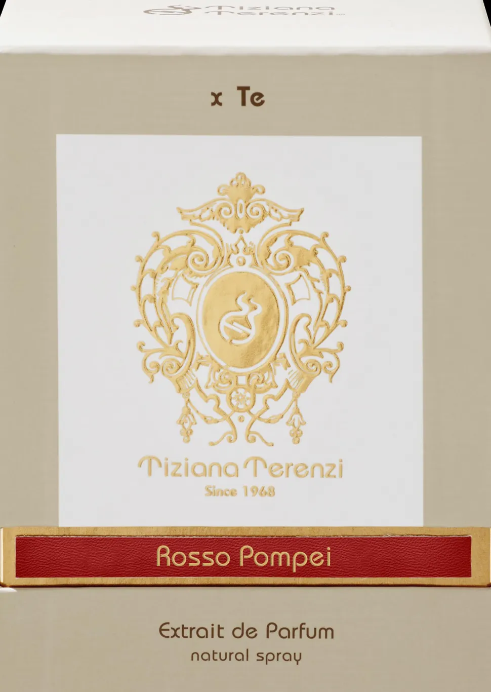 Der Flakon des Tiziana Terenzi Rosso Pompei Extrait de Parfum besticht durch seine tiefrote Farbe, die an das berühmte pompejanische Rot erinnert. Die goldene Kappe ergänzt das edle Design perfekt und verleiht dem Flakon eine luxuriöse Note. Die Form ist klar und schlicht, doch gleichzeitig voller Eleganz und Ausdruckskraft. Das Etikett ist in harmonischen Farben gehalten und trägt den Namen des Dufts in stilvoller Schrift, was den Flakon zu einem wahren Schmuckstück macht. Jeder Aspekt des Designs spiegelt die reiche Geschichte und das Geheimnisvolle wider, das Pompeji umgibt.