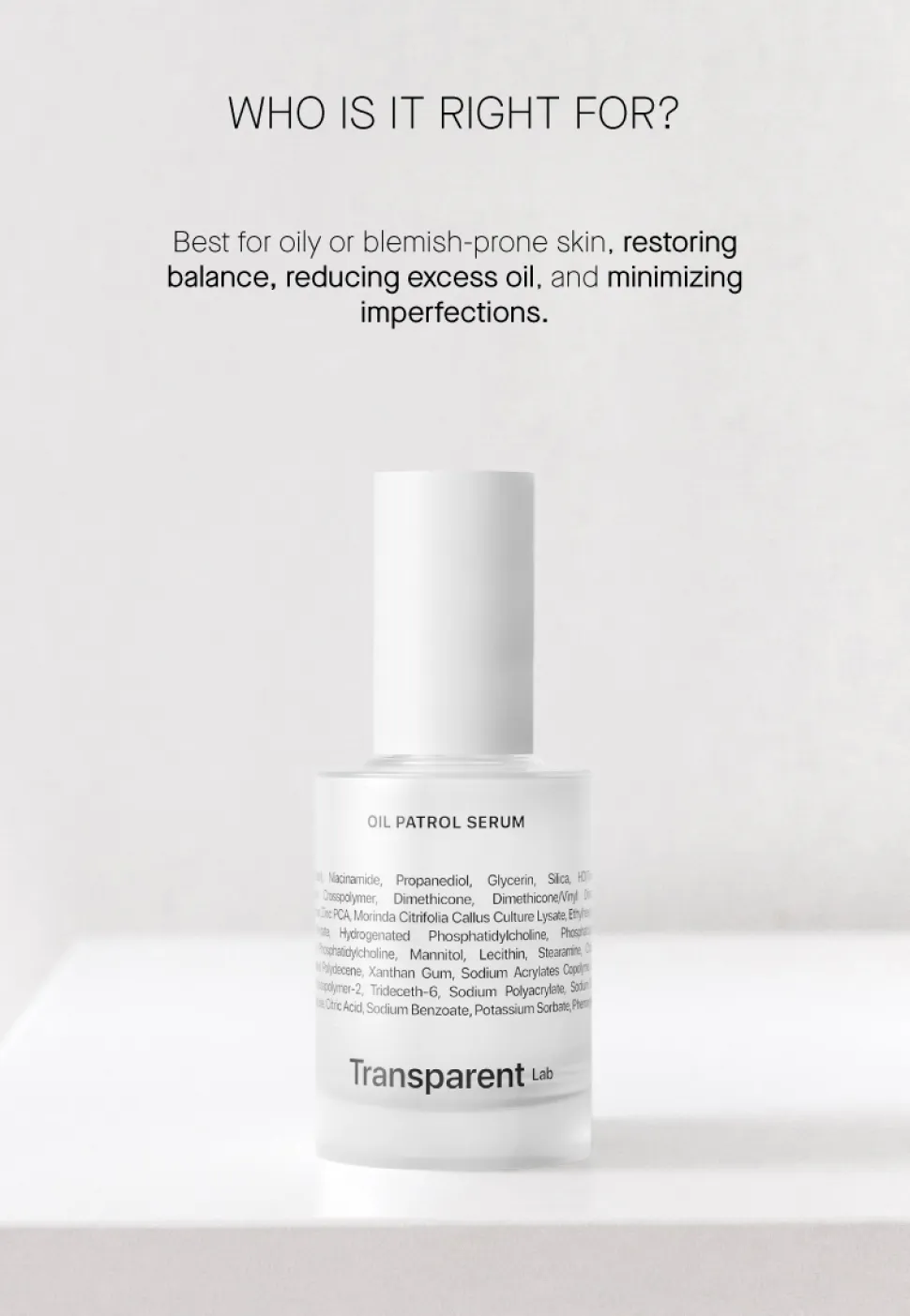 Produktdetails zu Serum Oil Patrol Serum – Mattierendes Gesichtsserum von Transparent Lab